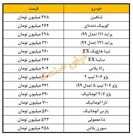 قیمت خودرو صفر داخلی در لحظه نگارش این گزارش در بازار ایران به شرح زیر است: