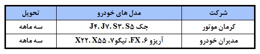 – ۹ مدل خودرو از ۲ خودروساز کرمانموتور و مدیرانخودرو قابل انتخاب است.