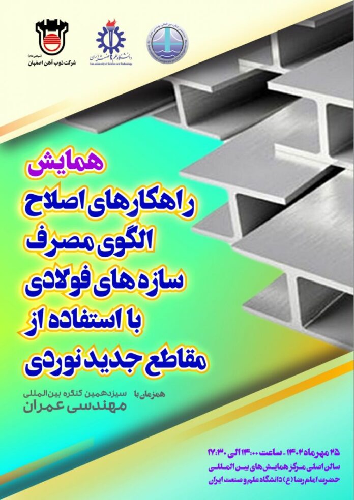 همایش راهکارهای اصلاح الگوی مصرف سازه های فولادی با استفاده از مقاطع جدید نوردی با همکاری شرکت ذوب آهن اصفهان برگزار می شود.