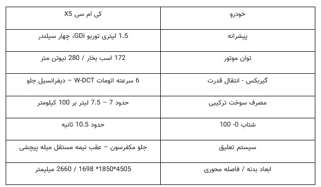 کرمان موتور مشخصات کی ام سی ایکس ۵ را به صورت رسمی اعلام کرد.
