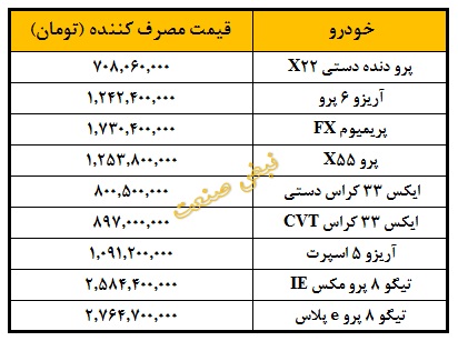 قیمت تیگو ۸ پرو مکس IE نیز ۲ میلیارد و ۵۸۴ میلیون تومان اعلام شده است. بررسی قیمت محصولات مدیران خودور نشان می دهد که قیمت X۵۵ پرو نیز حوالی یک میلیارد و ۲۵۳ میلیون تومان است. قیمت ایکس ۳۳ کراس دستی نیز ۸۰۰ میلیون تومان است. قیمت فونیکس مدیران خودرو برای مدل تیگو ۸ پرو e پلاس نیز ۲ میلیارد و ۷۶۴ میلیون تومان است.