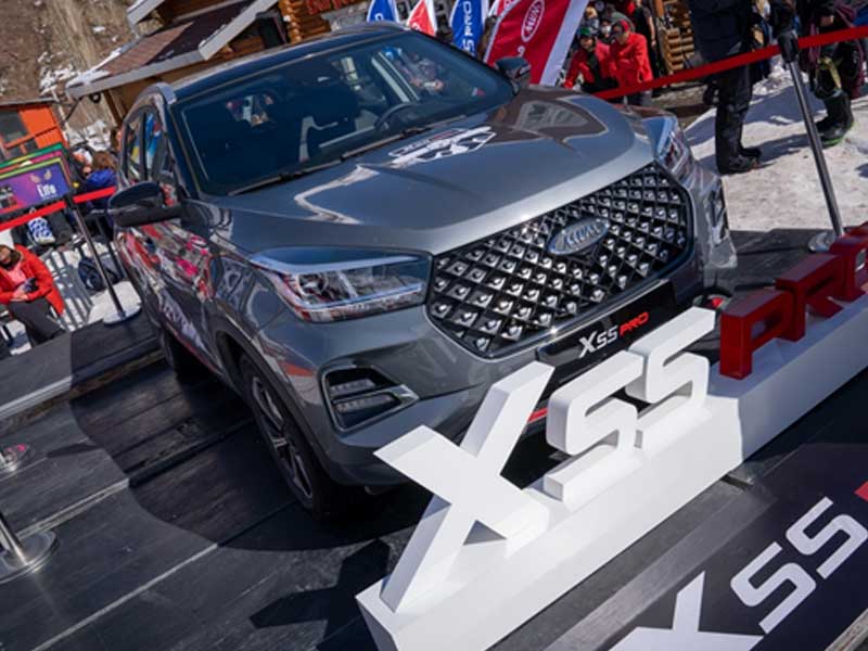این خودرو با عناصری کاملا مدرن و بهروز که در تولیدات برندهای مطرح جهان هم به چشم میآید طراحی شده که از جمله آنها میتوان به جلوپنجره ماتریسی کهکشانی و سپر اسپرت با تریم قرمز اشاره کرد که در مدلهای همرده و رقیب ایکس ۵۵ پرو دیده نمیشود.