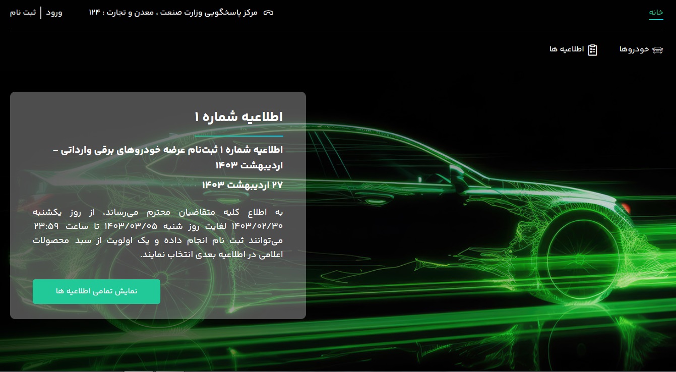 در حال حاضر اطلاعات ۵ خودروی برقی در سامانه جدید عرضه خودروهای برقی بارگذاری شده است.