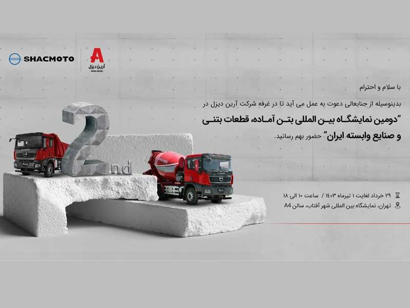آرین دیزل به عنوان یکی از پرتیراژ ترین خودروسازان بخش کار و تجاری کشور با محصولات باری جک و شک موتو در دومین نمایشگاه بینالمللی بتن آماده، قطعات بتنی و صنایع وابسته ایران شرکت می کند.