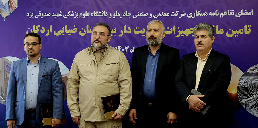 در تفاهمنامه همکاری شرکت معدنی و صنعتی چادرملو با دانشگاه علوم پزشکی شهید صدوقی یزد، در خصوص ارتقای خدمات بهداشتی و درمانی شهرستان اردکان، شرکت چادرملو متعهد شد نسبت به تامین مالی تجهیزات اولویت دار بیمارستان ضیایی اردکان در راستای ارائه خدمات تخصصی و بهسازی سیستم سرمایش و گرمایش این بیمارستان تا سقف ۳۵۰ میلیارد ریال اقدام کند.