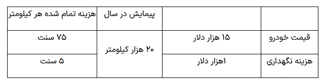 [1] برای جلوگیری از پیچیدگی محاسبانی این فرض اجرا شده است. والا باید خالص استهلاک و تورم را در قیمت سالانه خودرو محاسبه کرد.