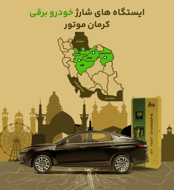 شارژرهای خودروهای برقی در نمایندگی‌های ۱۷۰۹ تهران، ۲۰۱۶ مشهد، ۳۴۰۶ رشت، ۲۸۰۳ قم و در مرکز خرید همیلا سنتر تهران، نیمه اول آذر ۱۴۰۳ راه ‌اندازی و خدمت رسانی به دارندگان خودرو و تاکسی‌های برقی کرمان موتور آغاز می‌شود.