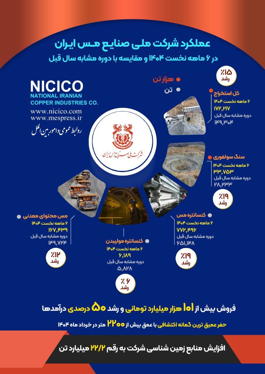 در این اینفوگرافیک به بخشهایی از عملکرد شرکت ملی مس در این دوره شش ماهه اشاره شده است.