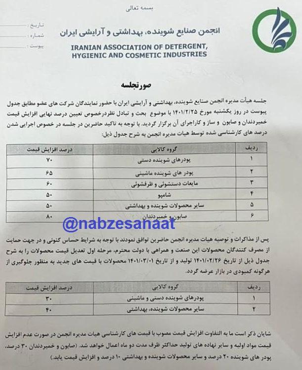 بر این اساس، طبق اعلام انجمن صنایع شوینده، بهداشتی و آرایشی مصوب شده بود که قیمت محصولات شوینده از ابتدای خردادماه ۳۰ تا ۴۰ درصد افزایش یابد.
